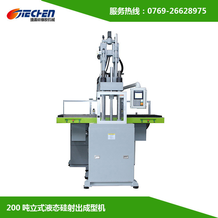 【捷晨機械】200噸立式液態硅膠射出成型機(嬰童用品液態硅膠成型機),指的是200噸鎖模力液態硅膠射出成型機,廣泛應用于潛水用品、電子產品、廚浴用品、醫療用品、成人用品、母嬰用品等,品質可靠,價格實惠,支持非標定制。