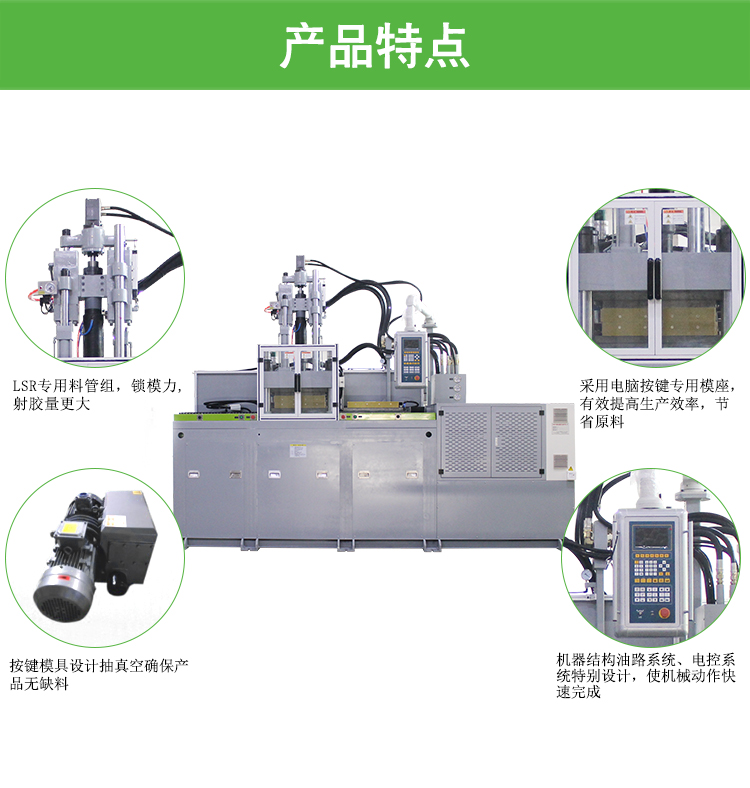 LSR專業料管組,鎖模力,射膠量最大,  通過PC鍵位用模座,更好提高了種植吸收率,控制成本化學原料  按紐塑料模開發抽真空度切實保障設備無缺料  機氣結構來設計潤滑模式化模式化。電機控制模式模式化有點來設計,使自動化機械舞蹈動作迅速結束,